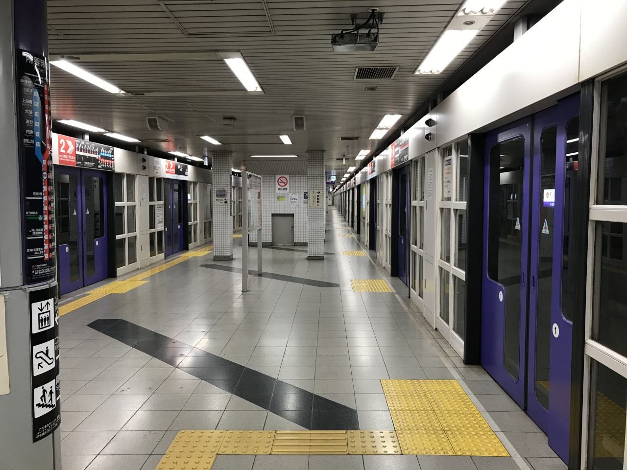 バス路線でも市内を東西に走るものはありますが、やはり定時性では地下鉄にかないません。夜間時間帯ということもあるかと思いますが、混雑もなく快適に利用することができました。バス停も地下鉄出入り口付近にある駅もあり、乗り継ぎも出来るようになっているのかなと。ホーム上は床から天井までホームドアで覆われており最初は少し威圧感を感じましたが慣れてしまえば大したことはありませんでした。