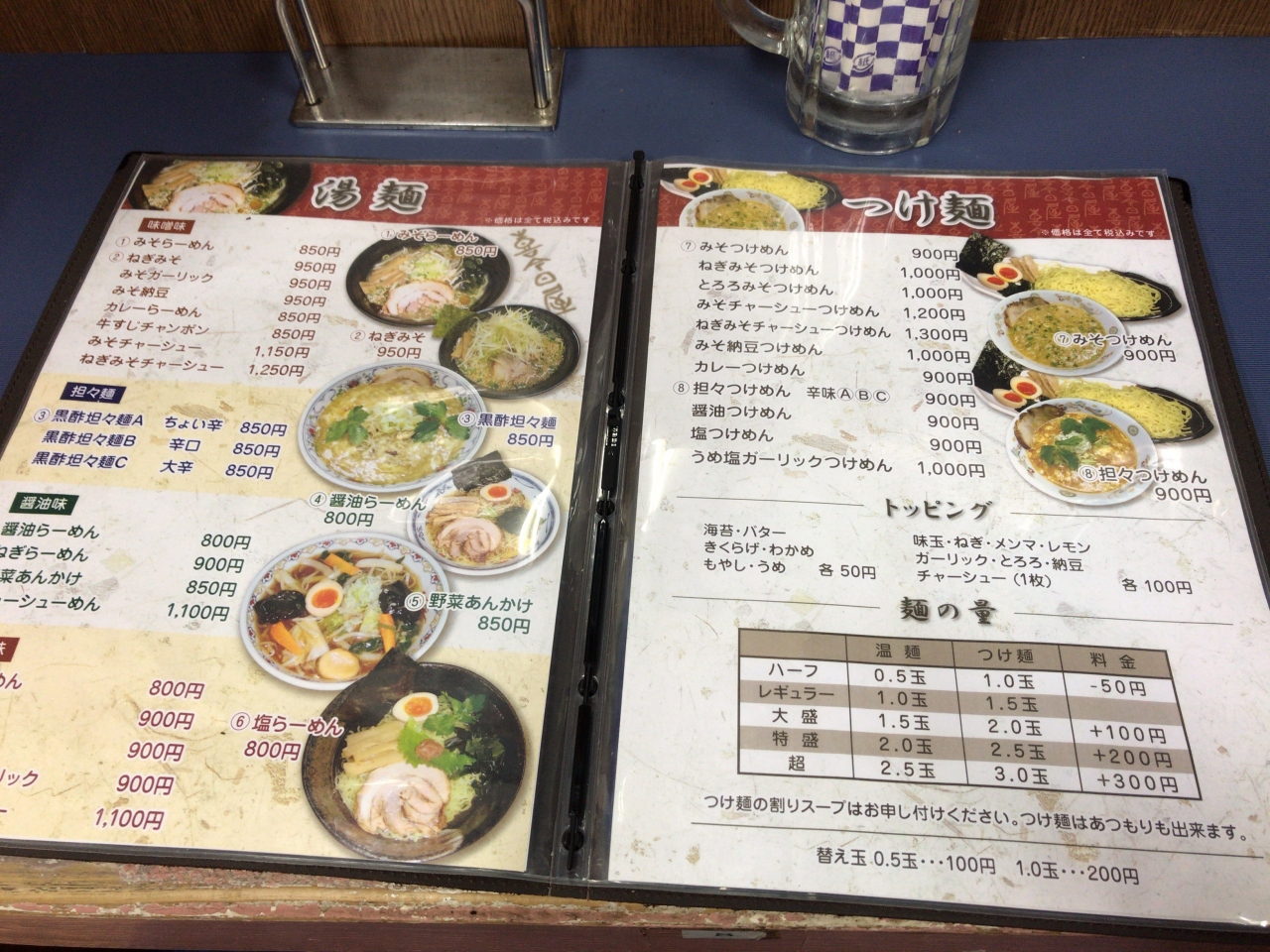 本業のラーメン1つとっても味噌・醤油・塩・担々麺につけ麺とバラエティ豊富なメニュー構成になっています。前月の売り上げリストがあり人気順に並んでいるので、迷った場合はそうしたものを参考にするのも面白いかもしれません。駅からは距離がありますが、地元住民や近くの企業への通退勤経路になっているのかお客さんの数はそこそこおり賑わいを見せています。テーブル席もカウンター席もあるので誰でも気軽に入れるのは良いですね。