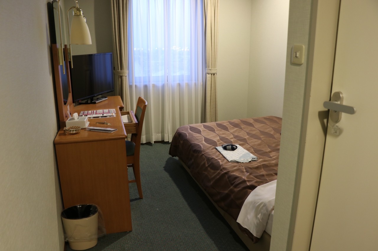 シングル利用で申し込んでいましたが、ベッド幅が広く快適に過ごすことができました。ふかふかで寝心地も良く、疲れた身体を休めるのにはちょうど良かったです。各部屋にはアメニティは無く、必要なものをフロント前から持っていくシステムなので、一部は数に限りがあるものもあり必要なものは早めに確保しておきたいところです。弘南鉄道の中央弘前からはそこまで遠くありませんがJRの弘前からは荷物を持っていると大変かなと感じる程度の距離があります。ホテルの専用駐車場はなく、道路を挟んだ反対側のコインパーキングになるので注意が必要です。