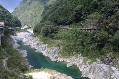 テラスがあり対岸を走るJR予讃線の「四国まんなか千年ものがたり号」の通過時間が掲載されています。地域と一体となって走る観光列車も良いなぁと感じた次第です。展望台からは渓谷が良く見える他、妖怪屋敷もあるので楽しめるコンテンツも。売店もあるので地産のお土産を探すのにちょうど良いかもしれません。駐車場がちょっと狭いのが気になるかもしれません。。。