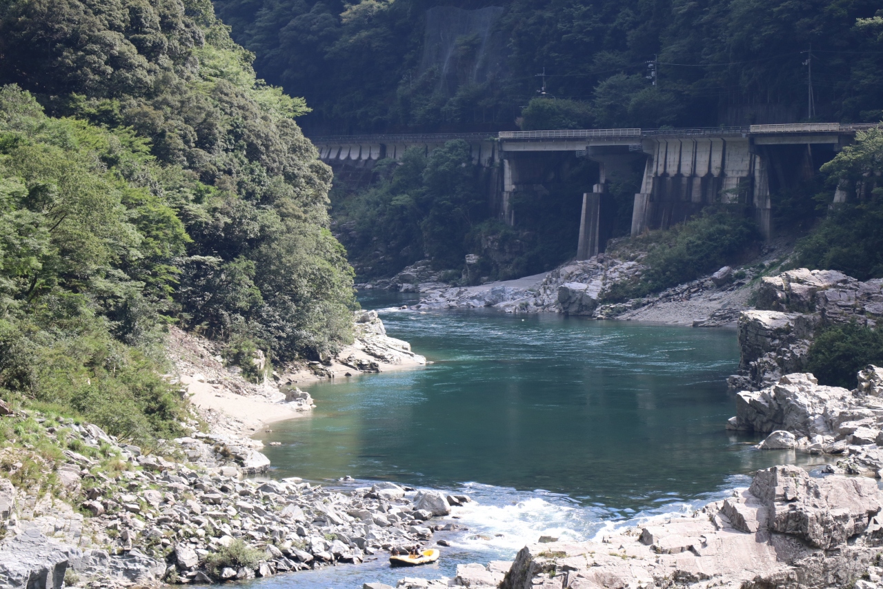 アクセスとしてはJRや路線バスがありますが、エリアが広く本数が限られていることもあり車やツアーバスなどでの訪問が良いかもしれません。山と山の間に広がる渓流。鉄道や道路は元来なかったもので自然を堪能することができました。ロードバイクでツーリングを楽しむ人々も見かけましたが、一部見通しが悪くなっているところも多いので通行の際には注意が必要。