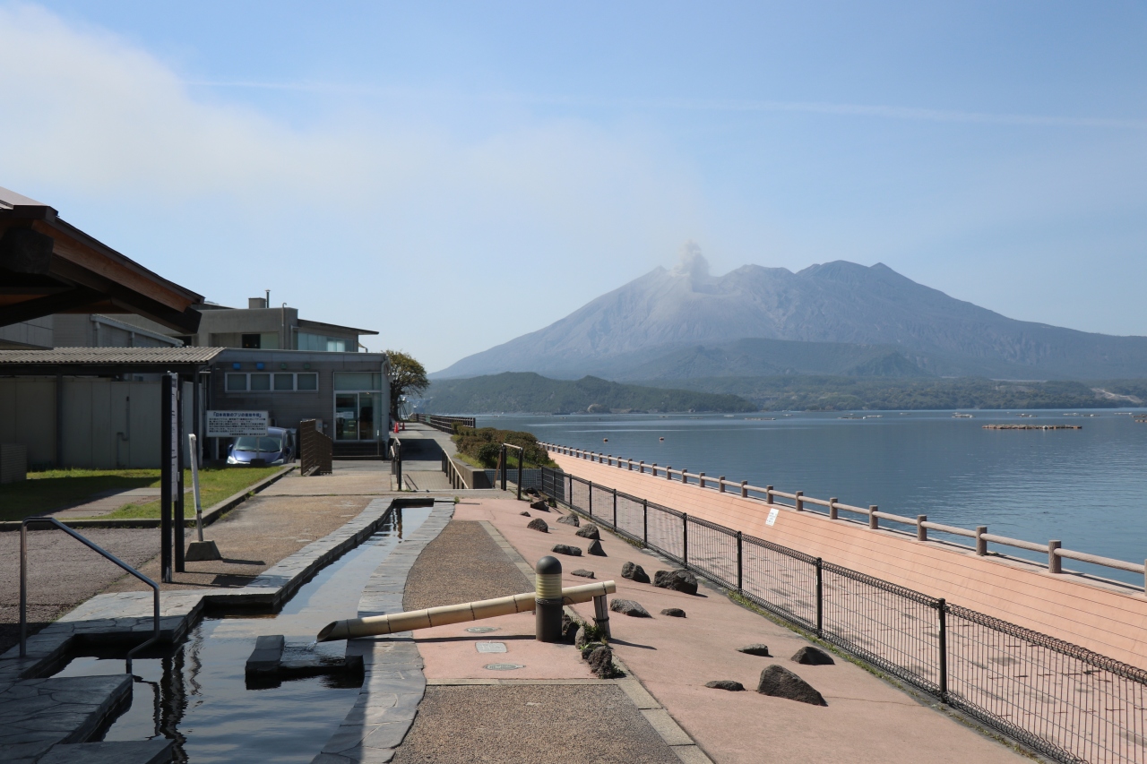 桜島を眺めながらのんびりと足湯に浸かることができます。一部分には屋根もついているので、雨天時はともかく日差しが強い夏場でも楽しめるのではないのでしょうか?