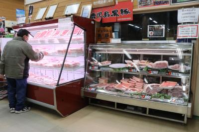 日替わりランチが500円というレストランは11時~16時の間での営業なのでちょっと早めの夕食などには使えません。着いたのがレストランの時間外ということもあり、県道沿いにありアクセスは悪くないものの建物内にお客さんの姿はありませんでした。定休日もあるのでスタンプ収集の場合などには注意が必要です。中では黒豚や野菜、加工品などが並べられていました。