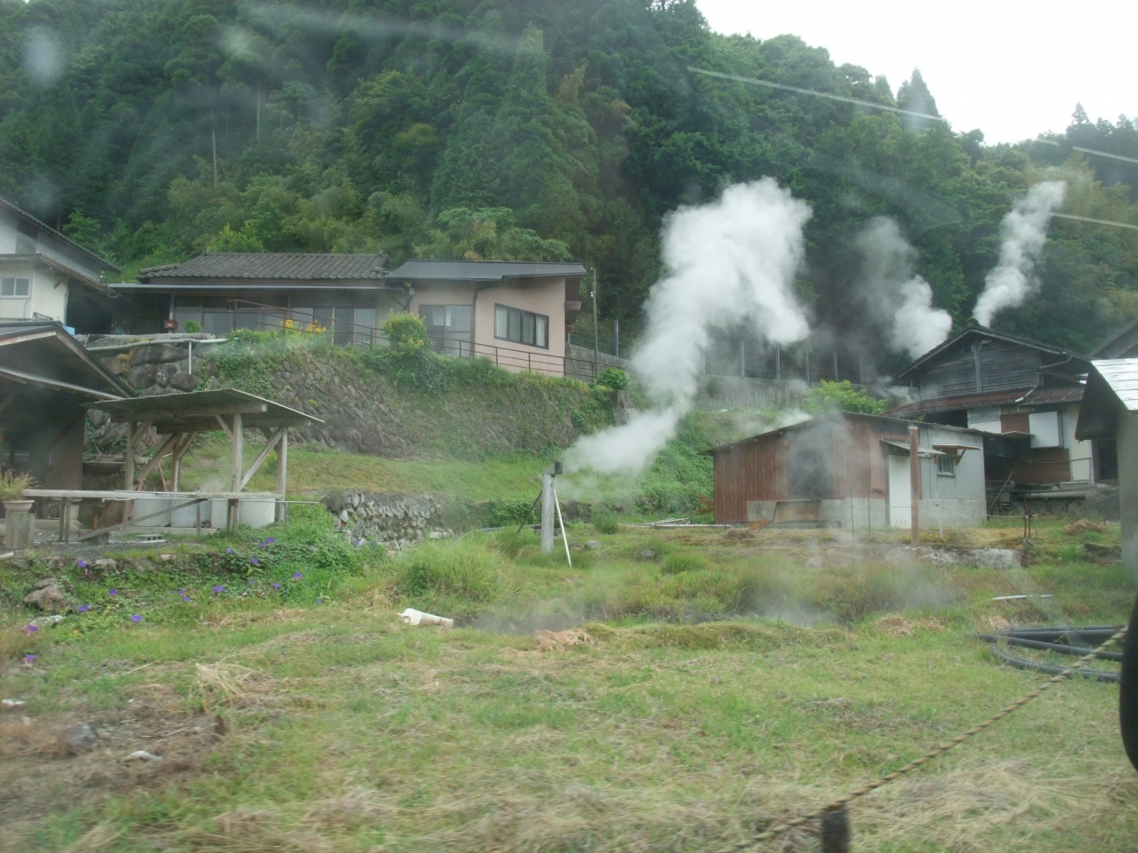 九重連山を望む飯田高原の一角、「九重夢大吊橋」からすぐの所にある温泉が筌の口温泉です。筌の口温泉には昔からある鉄分の強い茶色の湯の湧き出ている町営温泉もありますが、私たちが九州に行く度に立ち寄るのは「山里の湯」という炭酸泉の湧き出ている小さな日帰り温泉です。38度とちょっとぬるめですが、じっとしていると体中に泡粒がついてきてとても気持ちがよく、疲れが取れる気がします。