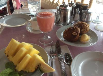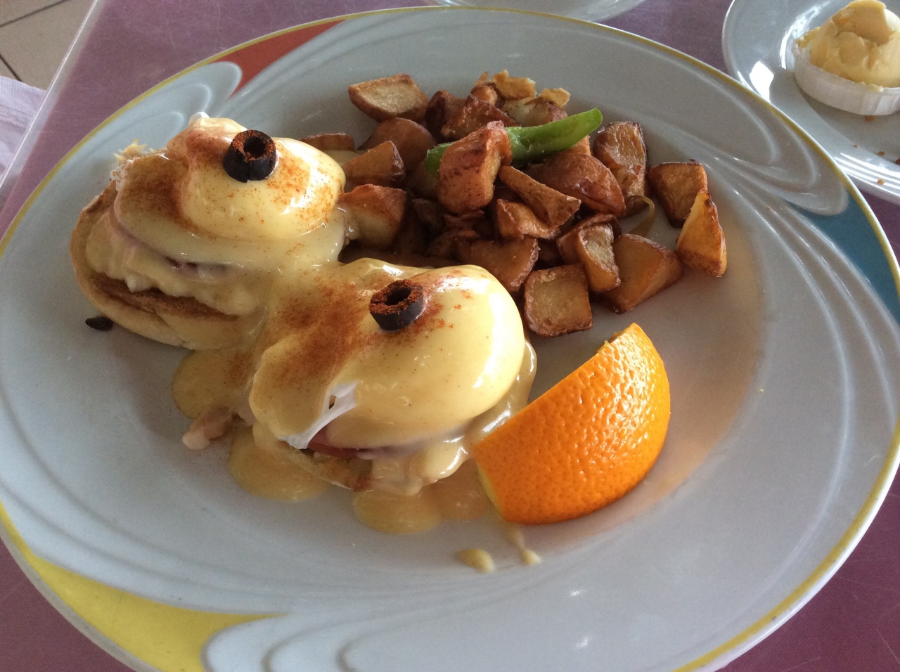 エッグベネディクトを食べたくて行きました。娘と二人で行ったので、パイナップルとマフィンのセットとエッグベネディクトを一つずつ頼んでシェアしました。エッグベネディクトはもちろんのこと、パイナップルもマフィンも美味しかったです。