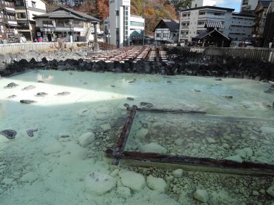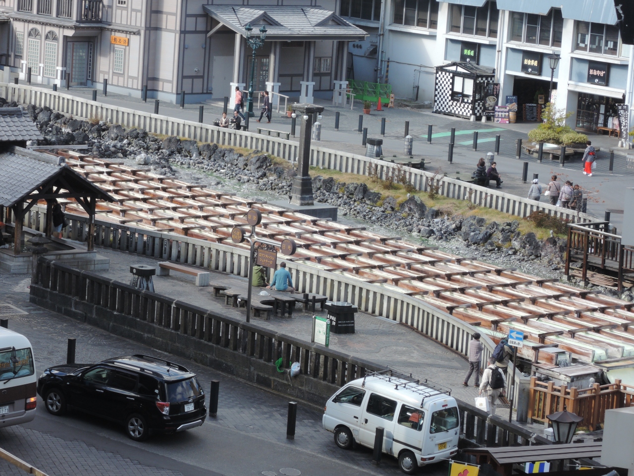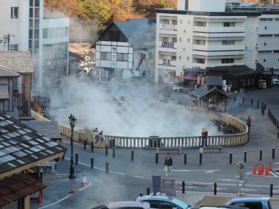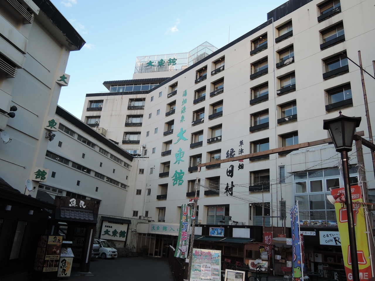このロケーションを持つ旅館は、大東館を含めて大小4軒だけなので、立地的には最高だと言えます。ただ、今回の宿泊プランは、平日とはいえ1泊2食1万円以下なので、湯畑に面した部屋ではありませんでした。でも、夜、朝、昼、チョイと下駄を突っかけて見に行ける特権を行使できて幸せでした。