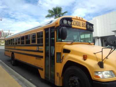 ホテルに戻ってきたらスクールバス停まっててえ?これ乗るの?とちょっと笑...