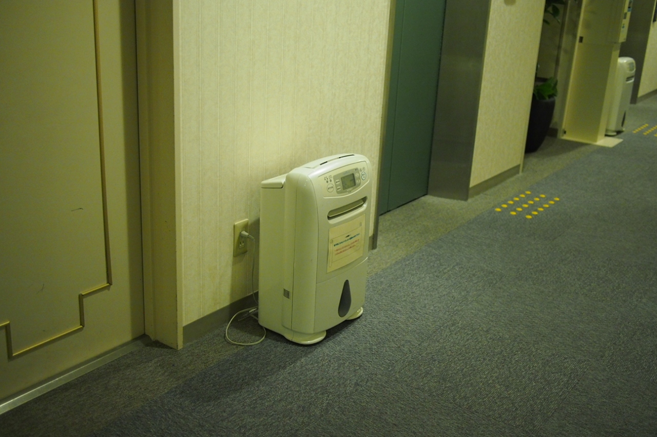 どの階にも廊下に空気洗浄機が並らんでいたので、