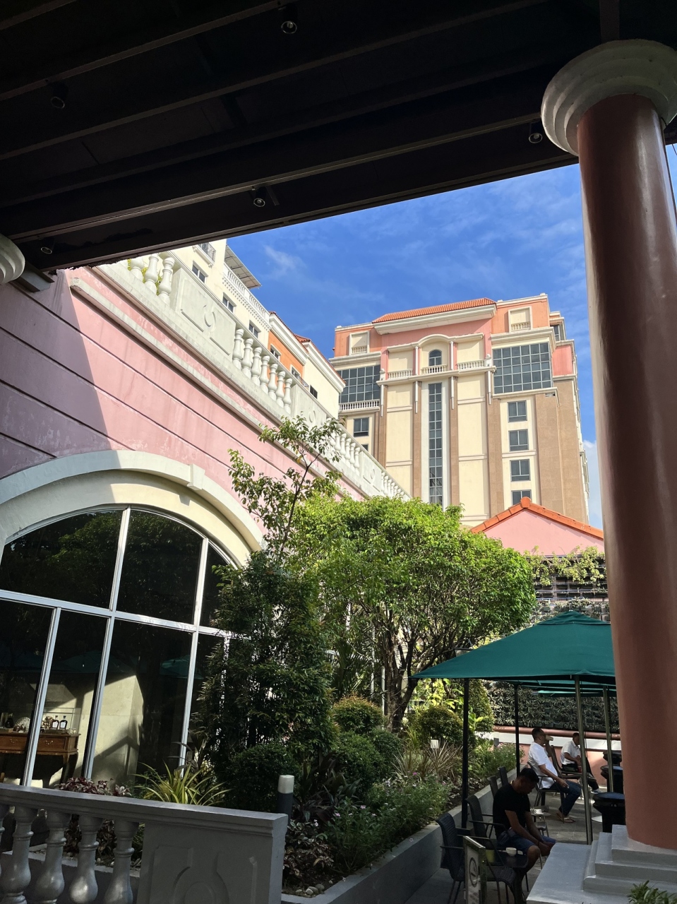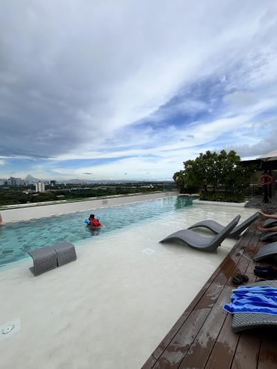 マニラ空港第3ターミナルからスカイブリッジ経由で歩いて行けます。ゴルフコースビューにアップ、部屋は広く清潔、ラウンジはアフタヌーンティーはケーキなしでショボく、カクテルタイムは品数多く大満足、ドリンクは席まで持って来てくれます。プールは小さめ。ジムも小さい、サウナあり。朝食は海苔巻き、お好み焼きあり、ヌードルもあり。満足。スタッフも笑顔で◎