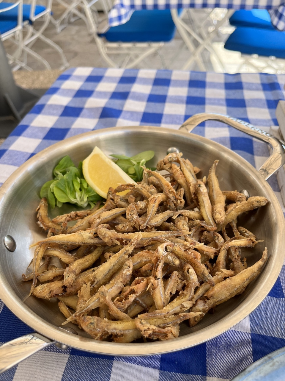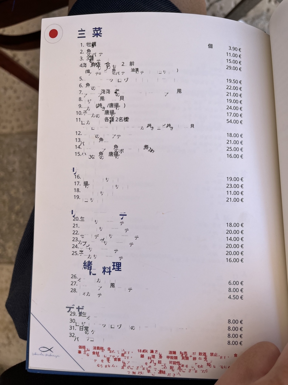 2024年7月に利用。こちらの口コミで日本語メニューがあると知り入店。文字化けか印字ミスのため読み取れず。小魚のフライ16ユーロとコーラ6ユーロを注文。レモンを絞り頂きました。少し塩辛でしたが、港を見ながらゆっくりできました。