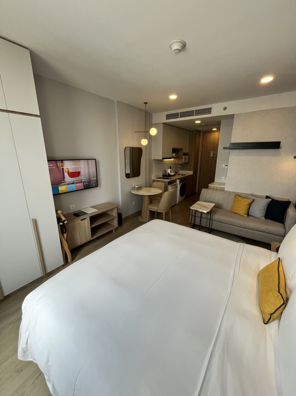2025年5月利用 トンロー駅から歩けます。プールは小さい、ジムはマシン少ないです。水曜と金曜にハッピーアワーあり。ワインとビールのみ。ジンやウィスキーなどはない。部屋はキッチンあり清潔感あってよかった。日本の民放みれます。お風呂もあります。洗い場少ないです。サウナもありますが水風呂なし。スタッフさんみなさん親切丁寧。