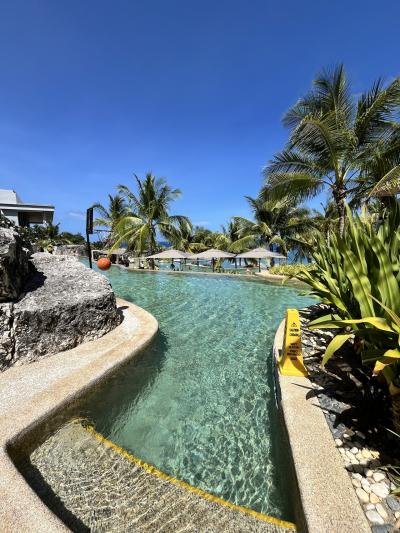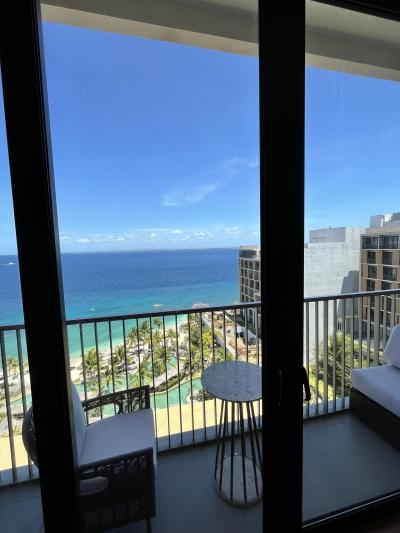 2024年GW 1泊15,139ペソ約4万円、スイートナイト使用でジュニアスイートルームとなりました。マクタン島のリゾートですので周りにレストランやコンビニはありません。セブンが徒歩25分です。ラウンジサービスはないのですがプラチナ特典で、アフタヌーンティー、ワインとつまみセットをフロント前で頂きました。部屋は清潔感あり眺望抜群、プールはなぜか温水です。気温が高いのに温水はちょっと。ビーチは透明度抜群。ライフジャケットは無料で借りられます。シュノーケルは1時間1,000ペソ。朝食は品数少なめ、韓国料理コーナーあり。空港からgrabで350ペソくらい。ちなみに、流しのタクシーで、メーターの方が安いです。メーター使用せず500とかふっかけてきます。