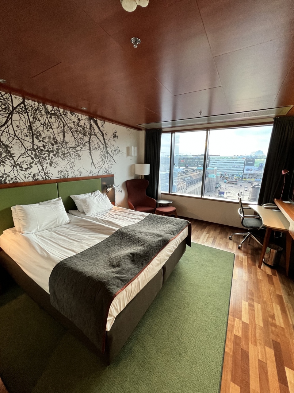 ヘルシンキ中央駅の横ですが、外の音が聞こえません。室内は清潔で、フロントスタッフさんも笑顔の対応で良かったです。バスタブはなくシャワーのみ。2階にサウナがありました。空港行きの、電車もすぐで市内観光は徒歩で行けます。
