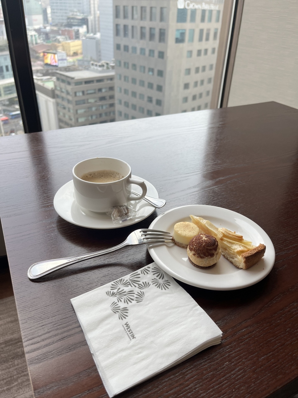 高層階をリクエスト、結果12階。ソウル広場側なので眺望はまあまあ。ラウンジは品数多い。風呂とサウナが3階にあり空いていてとても良かった。明洞の繁華街に行くのに横断歩道がないため地下に下りるのが面倒ですが許容範囲。スタッフみなさん笑顔で感じ良し。ウェスティンの接客は、みんな笑顔で◎。