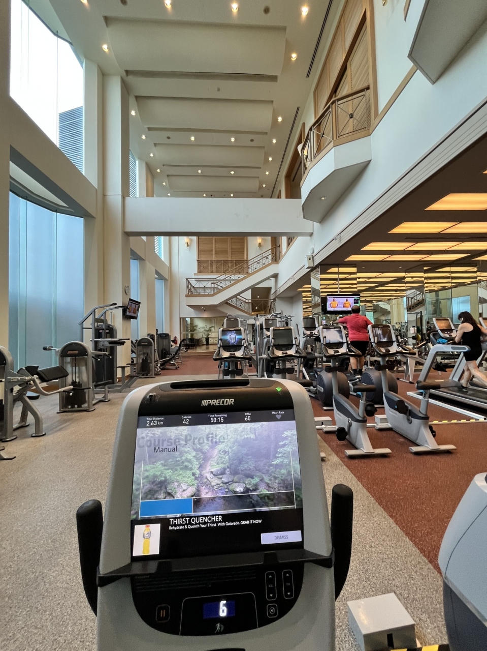 地下二階に、大きなジムと、プール、大浴場、サウナ3種類があり、とても良かったです。部屋はリバービューにアップグレードして頂きました。朝食はラウンジで、品数は少ないものの満足でした。カクテルタイムは、夕食の代わりになるくらい品数が多くて満足しました。