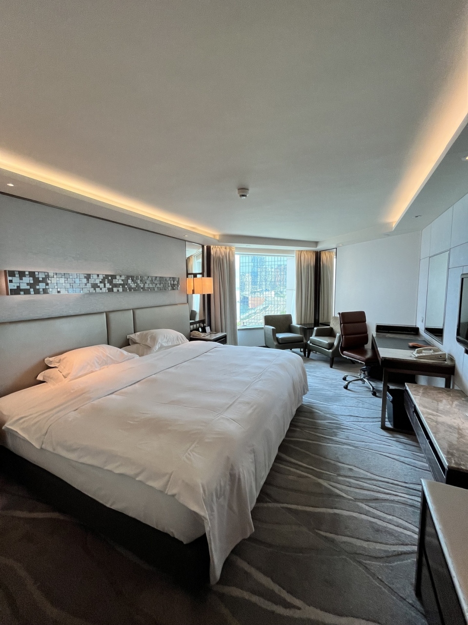 2023年5月宿泊 約14,000円 コーナールームへアップグレード頂きました。眺望抜群、セントラル駅直結で立地最高。空港エキスプレスホームまで10分以内で行けます。ラウンジはフード充実、ドリンクはオーダー制なので◎。朝食は品数多めで前評判が、良かったので期待しましたが、味が少し?フォーのチキン出汁は、味がなく、お寿司もパサパサ。部屋はコーナールームでビューバスは最高でした。プールもジムも広くて、サウナ、浴場もあり、朝食は難点ですが、リピートありです。