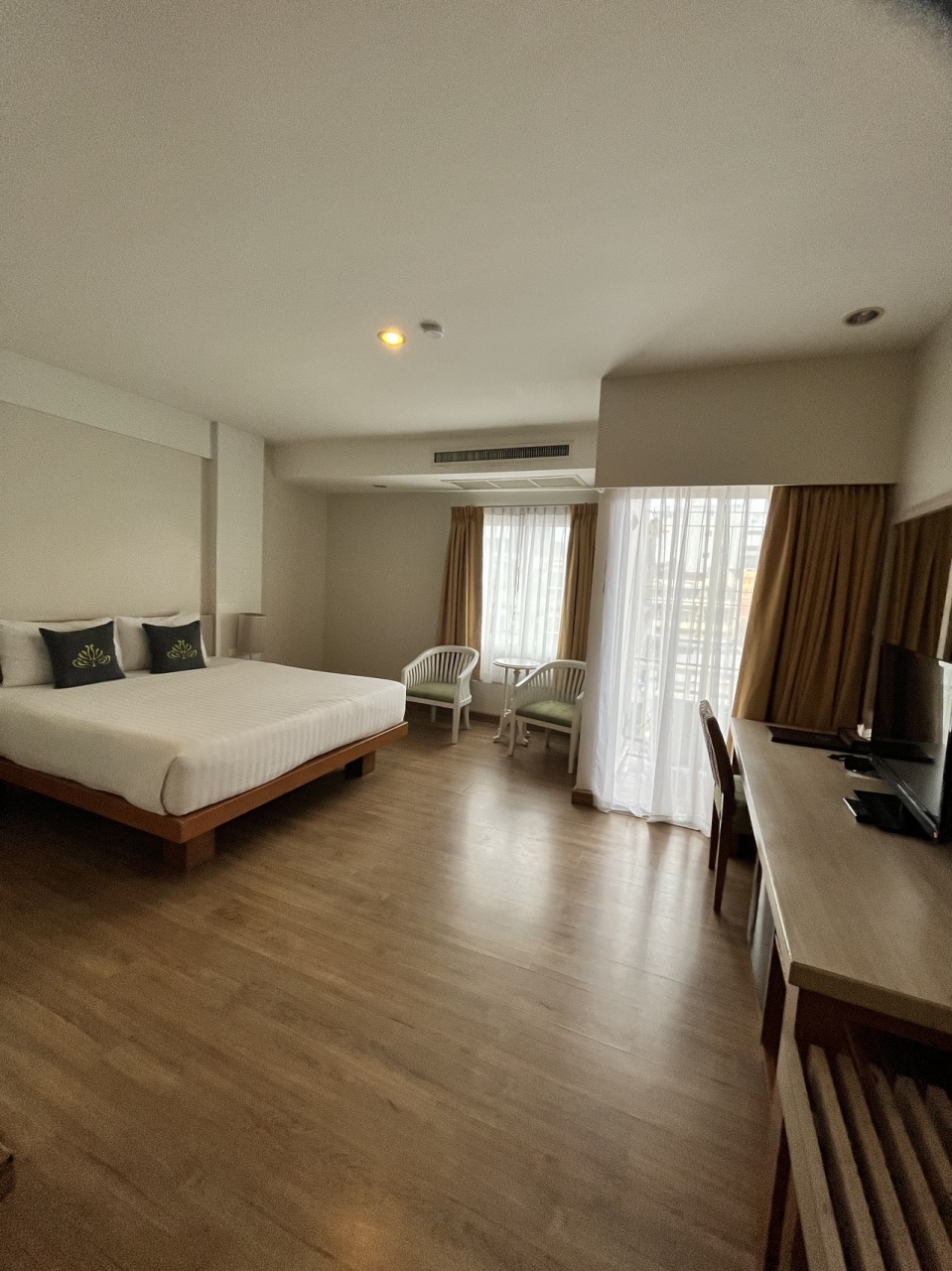 2023年7月宿泊 一番安い部屋で3,800円 朝食付きアゴダで予約。フロント、レストラン、警備スタッフみなさん笑顔で良かった。築古で、少々カビ臭くシーツも臭いがした。価格も価格なので。朝食はマッサマンカレーだけ美味しかった。