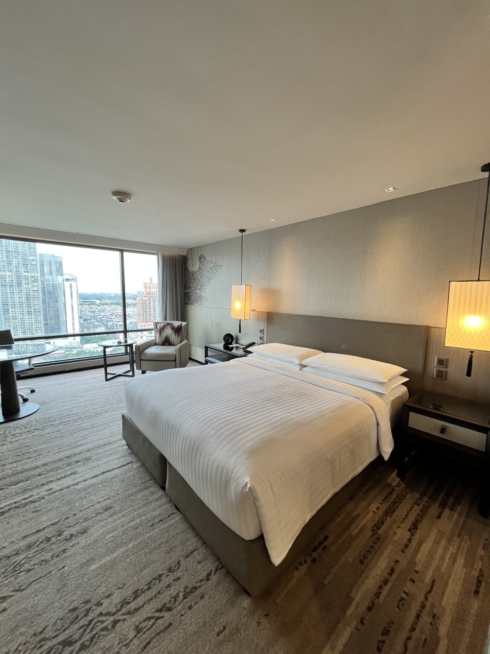 2023年7月、21,000ポイントで利用。プラチナ会員につき、クラブフロアへアップして頂きました。部屋は広く清潔。バスはなし。眺望最高。ジム広い。ジム隣ロッカールーム内に狭いが浴場、サウナあり。ラウンジは広く、飲み物食べ物も豊富。朝食も品数多く味もグッド。駅からはかなり歩くが、しばらくバンコクの定宿にしたい。