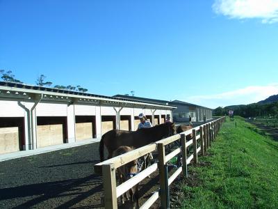 行って見ると高台に牧場があり、小さいながらも放牧地もあり、大きく立派な厩舎もありました。