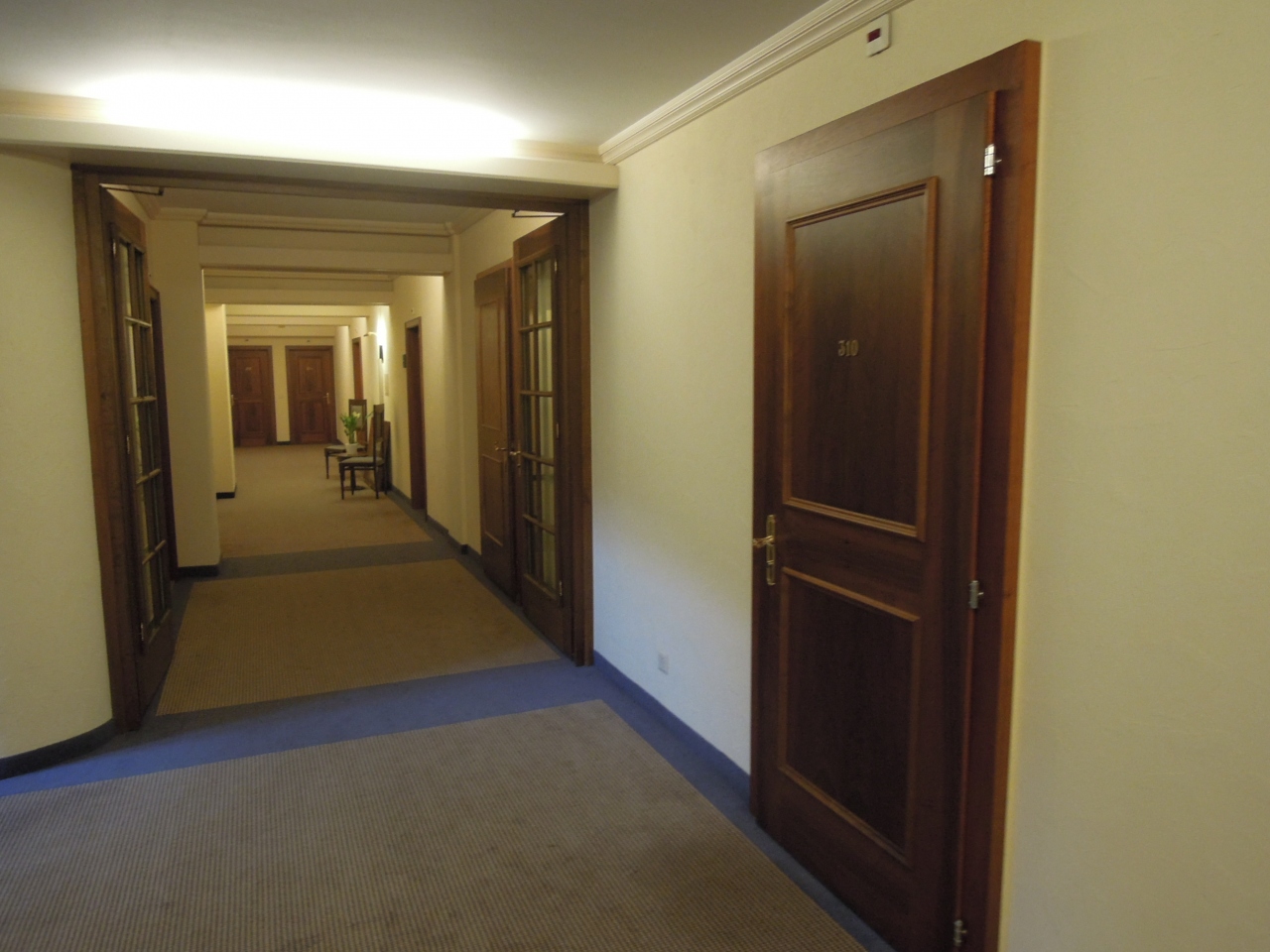 客室の入り口は二重扉になっており少々めんどくさかったですが、その分室内はとても静かでした。客室からの眺望は素晴らしく、マッターホルンがいい角度で見えました。ベッドに転がりながらマッターホルンを眺めることができるので、外出するのが面倒になります。朝食会場も非常に広くてゆったりといただけます。