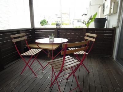 テラスからの景色は、住宅街なので向かいのマンションの駐車場が見えるだけです。- 旅行時期