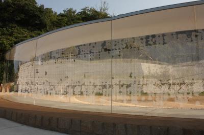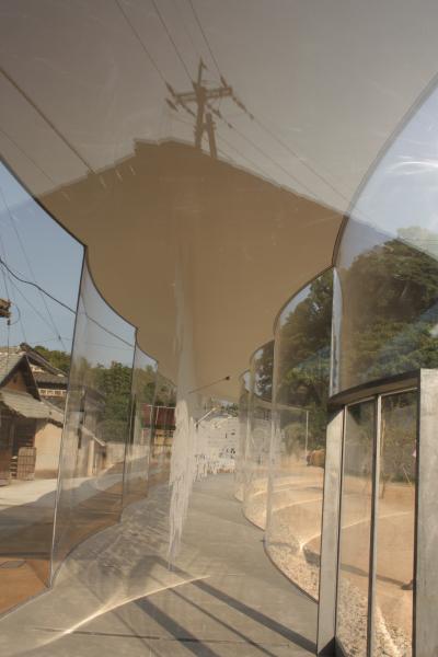 横から見てみると、こんな風にガラスが湾曲しています。民家の中に突然現...