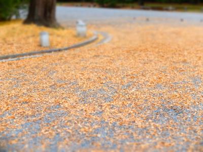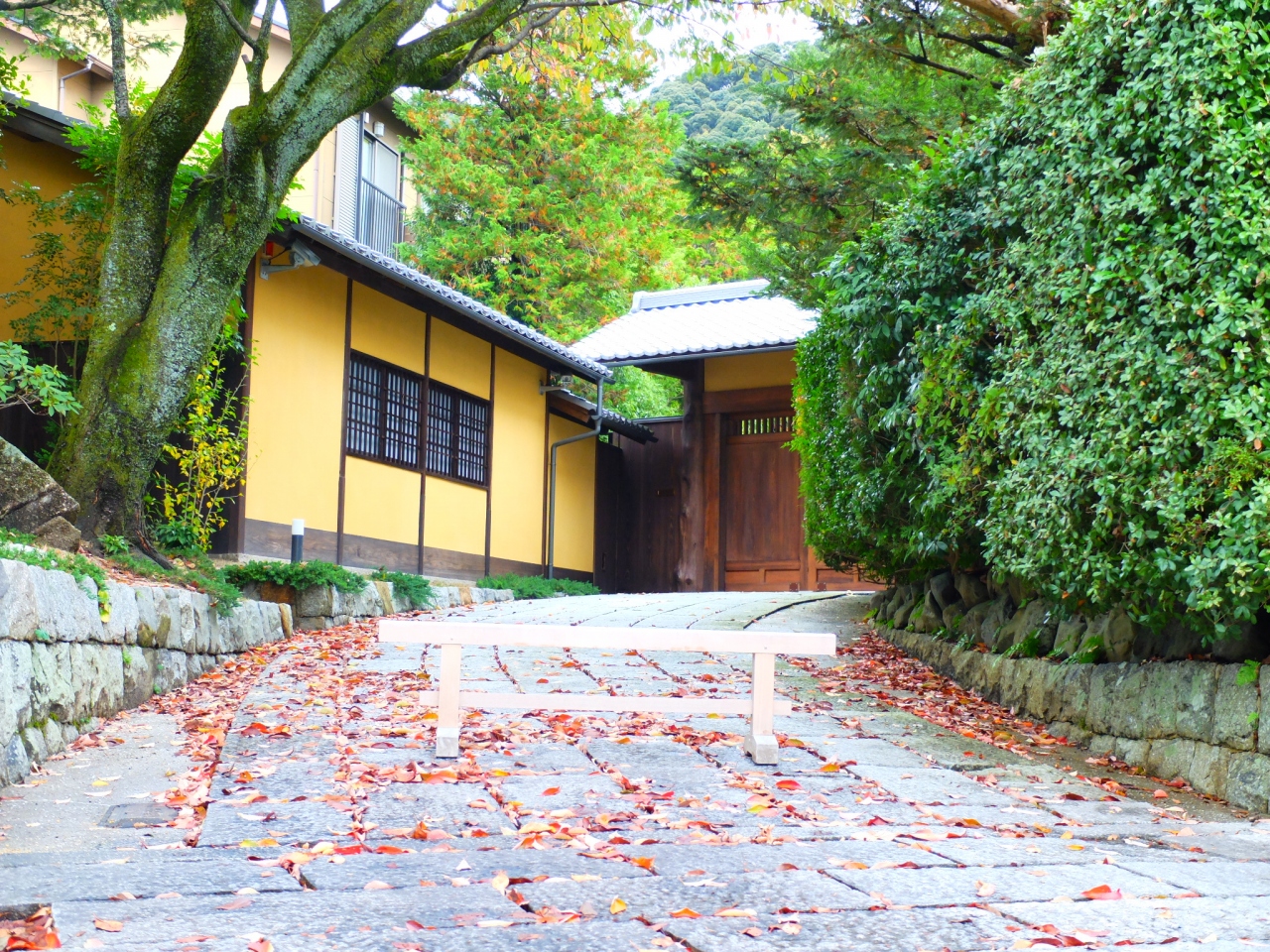 手入れの行き届いた木々から枯れ葉が落ちて、それもそのままになっていたり。