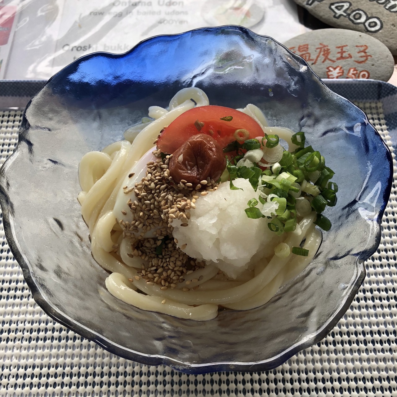 梅やトマト、ゴマが乗っていてさっぱり美味しいうどんでした。
