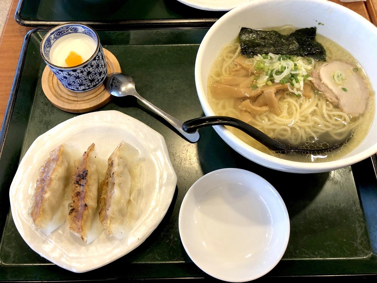 セット用ラーメン、餃子3個と杏仁がちょうど良い