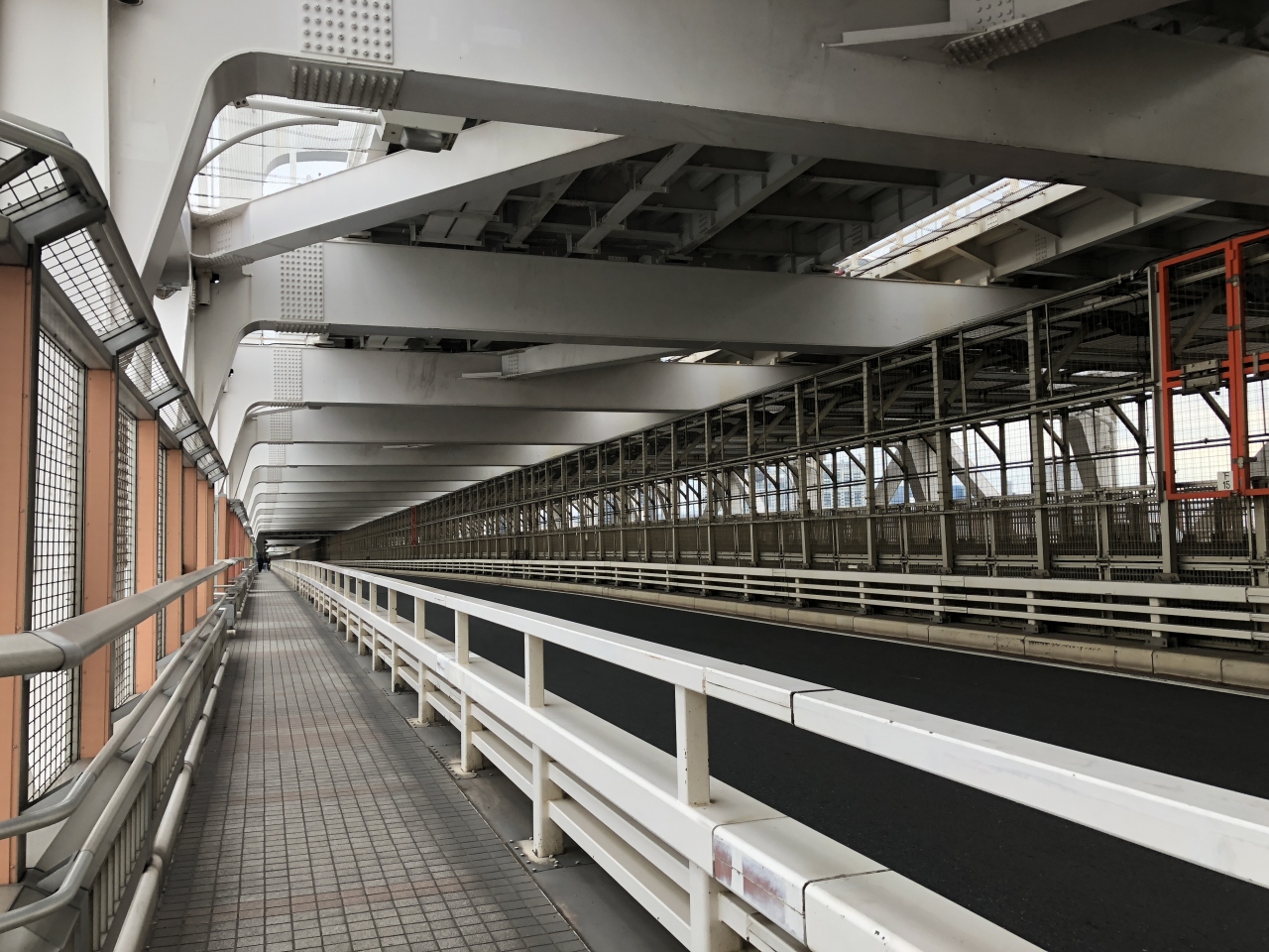 また、最初のほうは屋根部分にも左側の景色部分にも危険防止の網がかけられていますが、進んでいくにつれて屋根の網がなくなり、左側の網もなくなって、最終的にはとても見晴らしのよい状態で遊歩道を歩けるので、最後まで楽しく進めました。