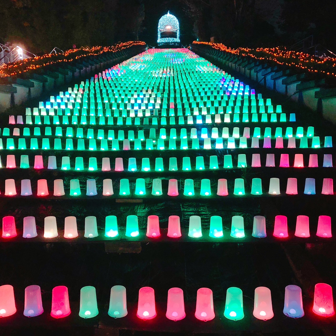 新しいイルミネーションはランタンを使用したものがメインで、ビカビカ光るよりはぼうっと灯るような感じです。色が綺麗ですがイルミネーションのようなギラギラ感はないので、大人向けかな?という印象でした。