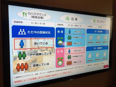 大浴場がついており、テレビのモニタで混雑具合がわかるのが大変便利でした。