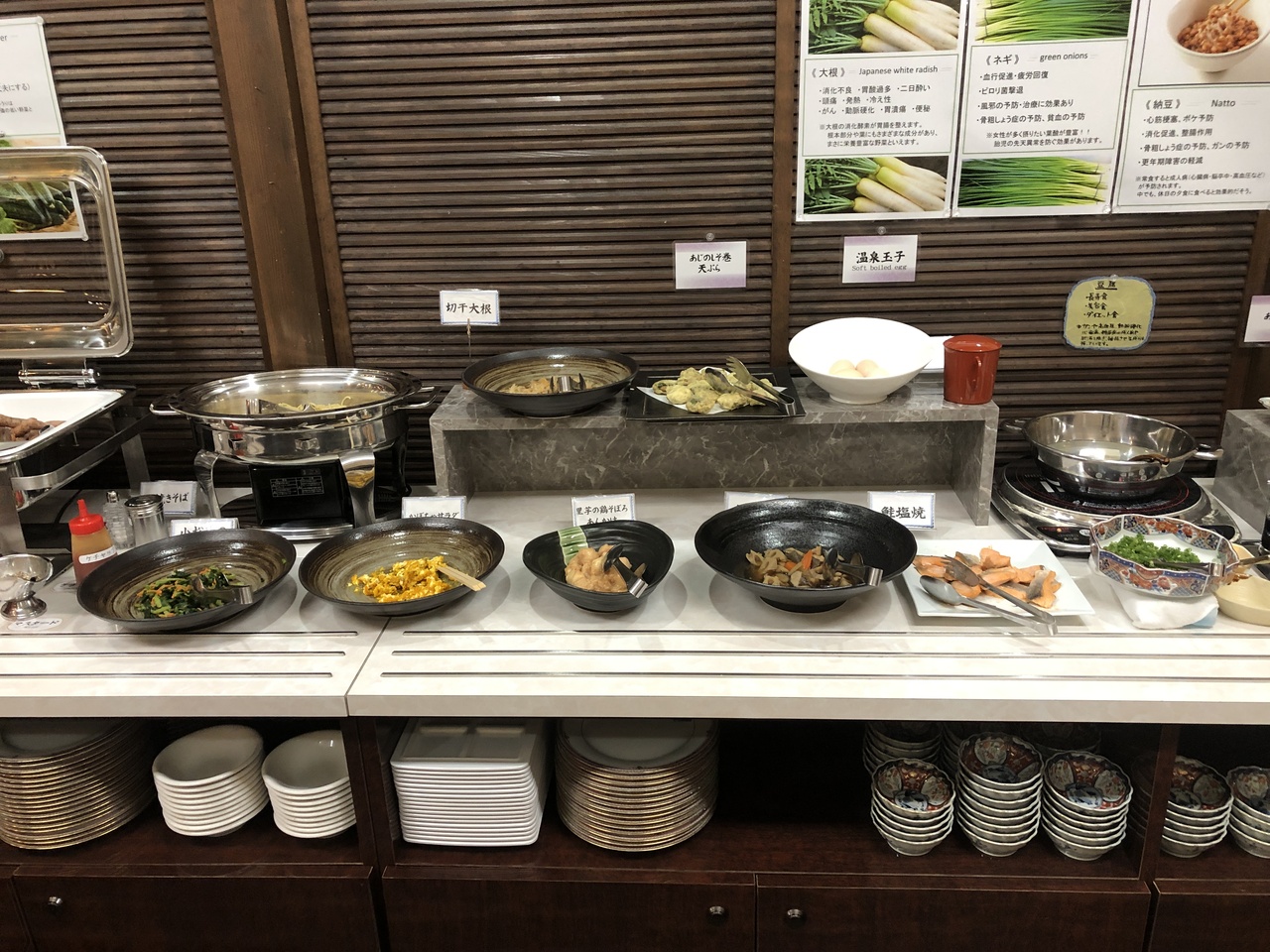 メニューは和食メインのビュッフェです。窓の外には小さい石庭もあって雰囲気もよく美味しかったです。- 旅行時期