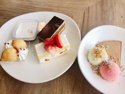 ひととおり料理を食べてスイーツに行ったのですが、こちらも小さなケーキが10種類近くとジェラートやチョコレートファウンテンもあり、全種類は食べきれませんでした。