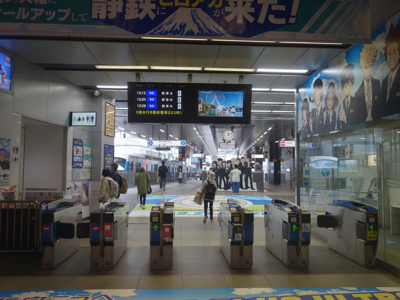 静鉄電車の駅。JRの静岡駅からは離れている。雨に濡れる。の駅です。JRの静岡駅からは離れていて、途中、そとに出なくてはならないに出、雨が降っている血、濡れます。静鉄電車に乗ると、新清水まで行けます。車両はどれもカラフルでとても楽しい。静岡市民の足です。