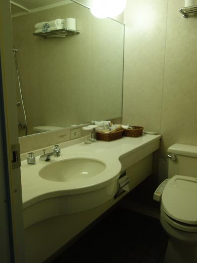 予約時にわかっていたことかもしれませんが、まったく好みに合わない部屋のレイアウトです。窓の代わりにバスルームになっていて、そのおくにシャワールーム。閉塞感満載です。まったく好みに合わない部屋のレイアウトです。効率的に徹したのでしょうが、いくら安くても(本当は安くはない)好みに合わない、ホテルには、もう、泊まらないでしょう。