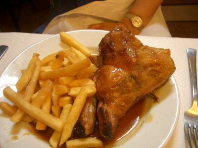 1.鳩が店内を飛び回っている。フンが心配。2.注文をテーブル・ペーパー(クロスではない!)に書き付ける。品が無いが間違いは無い。3.味は良くない。4.席は他に空いていても相席。5.値段は安い。6.ガルソンは人懐こいが品がない。