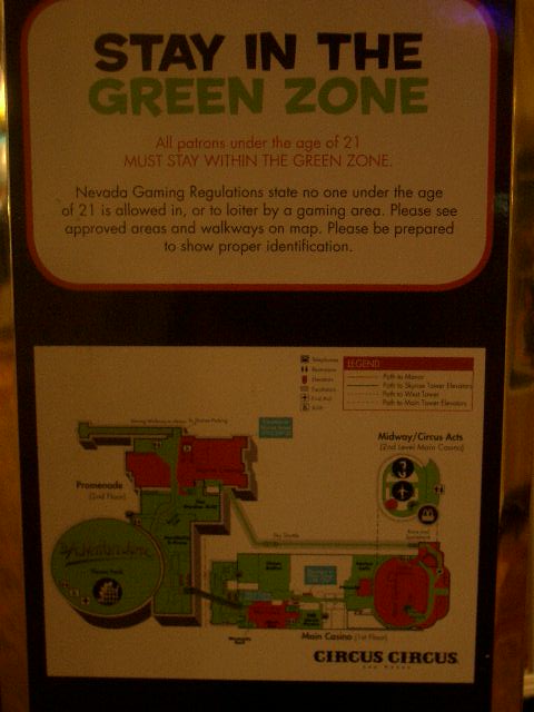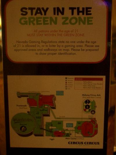 カジノエリアには21歳以下の人は入れません。サーカス・サーカスはそれらの人のために、グリーン・エリアを明示していて、その面積が広いので、子供ずれにも十分に楽しめます。