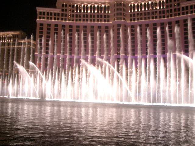 The Fountains の出し物は15分おきにやります。少し内容に変化があるようですし、The Strip に沿って横に広く噴水が配置されていますので、見る場所と時により雰囲気が変わります。様々な場所から見るのも面白いものです。