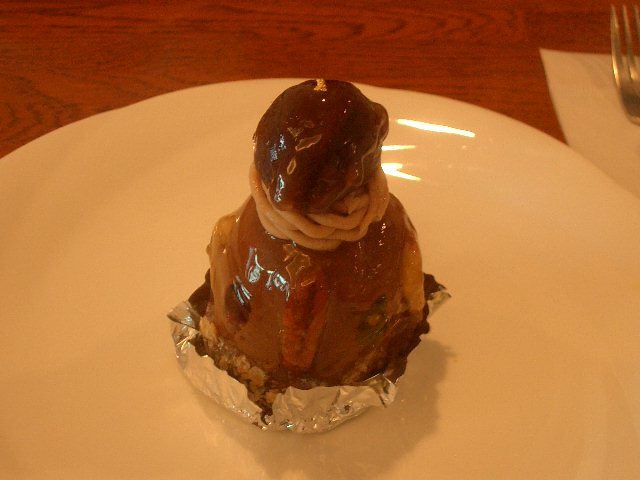 北白川の造形大学から西に入って少し行ったところにすてきなケーキ屋さんがあります。アップルパイが有名ですが、写真のベルギーモンブランもとてもおいしく出来ています。
