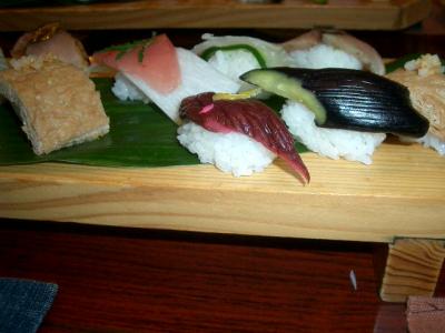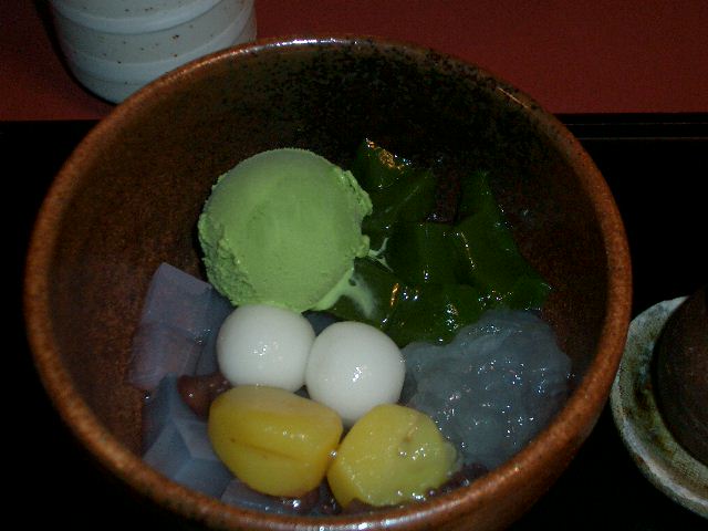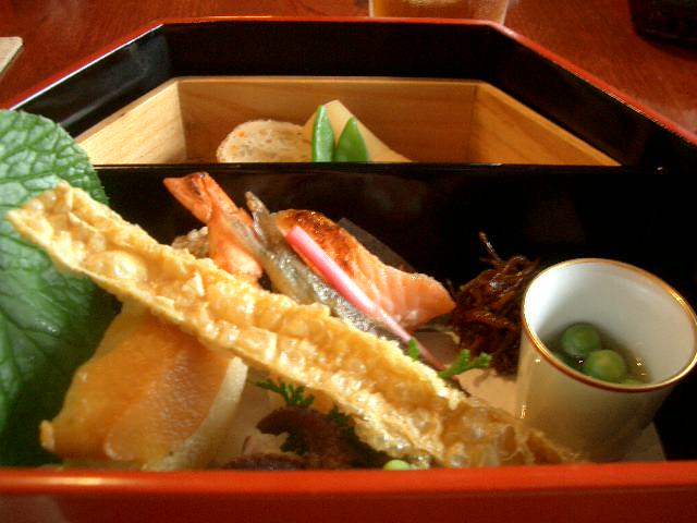 霊鑑寺わきを登っていき、最後の階段を上がると、やっと「鹿ヶ谷山荘」。眺めの良いお部屋で、近代的な京料理がいただけます。ジャズがながれ、店員は黒の制服。天井裏の見える、丸太小屋風の建物。お料理にも工夫が凝らしてあります。哲学の道を歩き、さらに元気のある人にはよさそうな隠れ所でしょう。