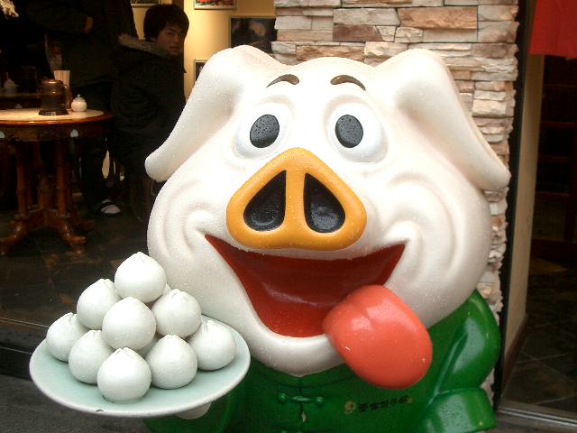 曹家包子館は例の「老祥記」の広場を挟んだ向かい側にあります。老祥記とおなじ経営だと思います。椎茸豚肉包(椎茸入り豚まん)は小粒で、一個90円。かめばじわっと味がしみる、本場の豚まんの味です。