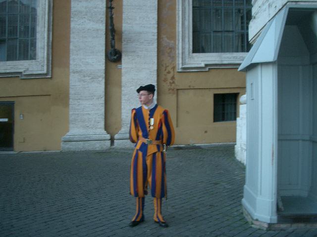 サン・ピエトロ寺院の出口の傭兵には近付くことが出来ます。でも、並んで記念撮影出来るのは、子供だけです。大人は断られます。