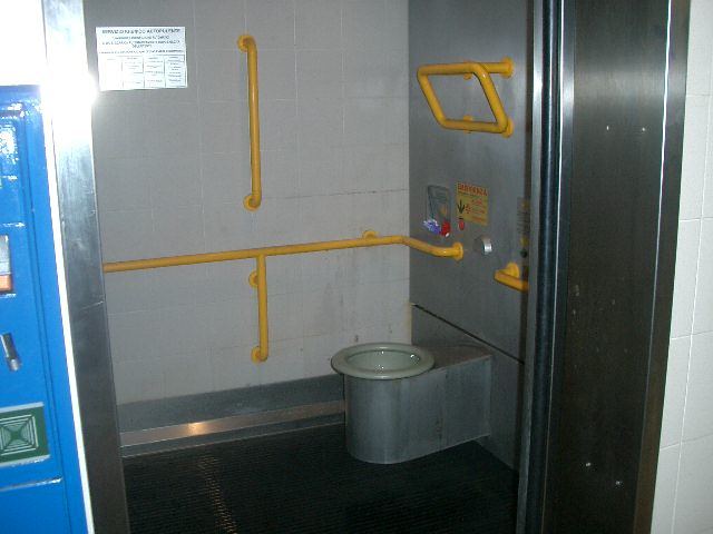 地下鉄駅構外のトイレです。0.50 ユーロの有料。無人。もちろん手前のドアが開きます。とても広くてゆったりしています。公衆にしてはきれいです。安心して、地下鉄を使った歩き回りができます。