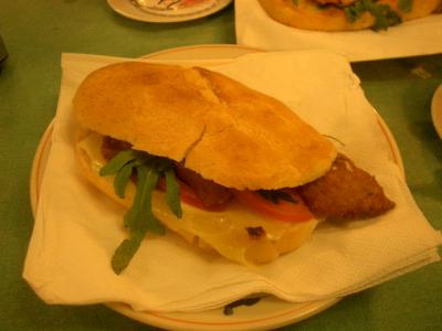 周囲の人の食べているのは、ビールとピッツァ1枚。それに、たまにサラダ。本格的な肉類や魚はなさそうな、庶民的なお店です。気軽に入れるお店です。