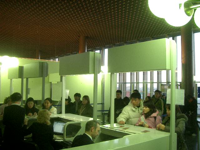 1.降機してターミナルに入り、アエロフロートの乗り継ぎカウンターに行き、モスクワ・ローマ間の搭乗券を発行してもらいます。パスポートは取られたままです。写真がこのカウンター。