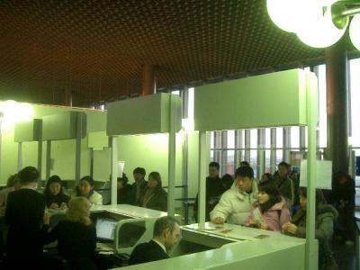 3.その窓口にアリタリアの職員が来て、搭乗券とパスポートを渡してくれます。すなわち、解散。各自で搭乗ゲートまで行き、飛行機に乗る事になります。自由時間ですので、ターミナル内を歩き回っても良し。