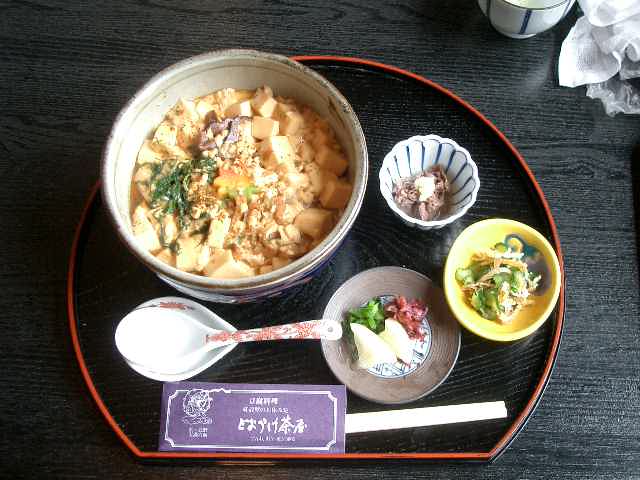 はじめてだったので、入門者として「とようけ丼」¥683を注文しました。一言でいうと、濃い目の味の玉子丼の雰囲気。絹豆腐、油揚げの甘煮、椎茸等がのっていました。付け出しに豆腐の単品もでますし、丼のほかに三皿もサイドディッシュが付きます。コストパフォーマンスのとても良い食べ物です。