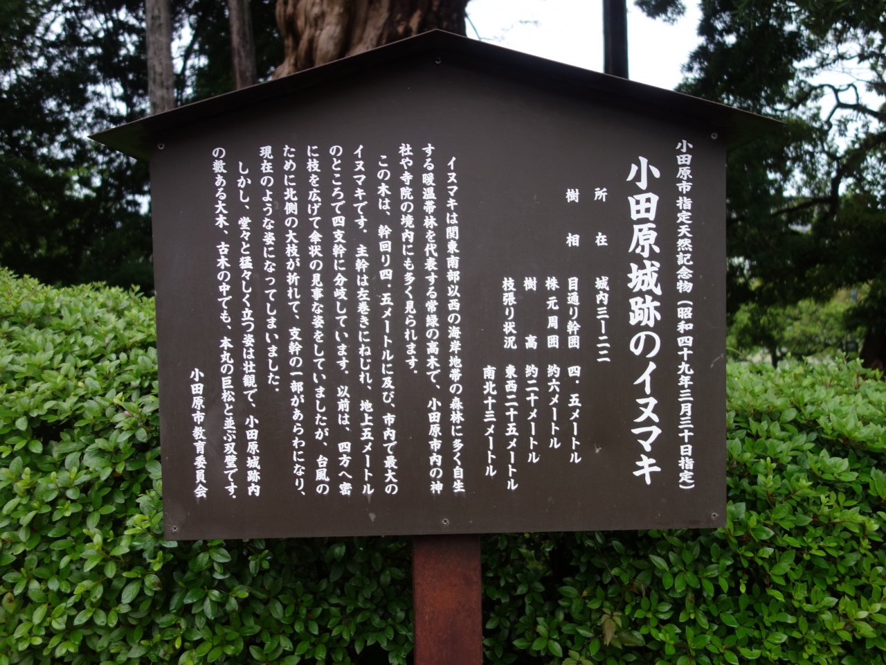 小田原城跡のイヌマキ。幹まわり4.5メートル。小田原市最大。