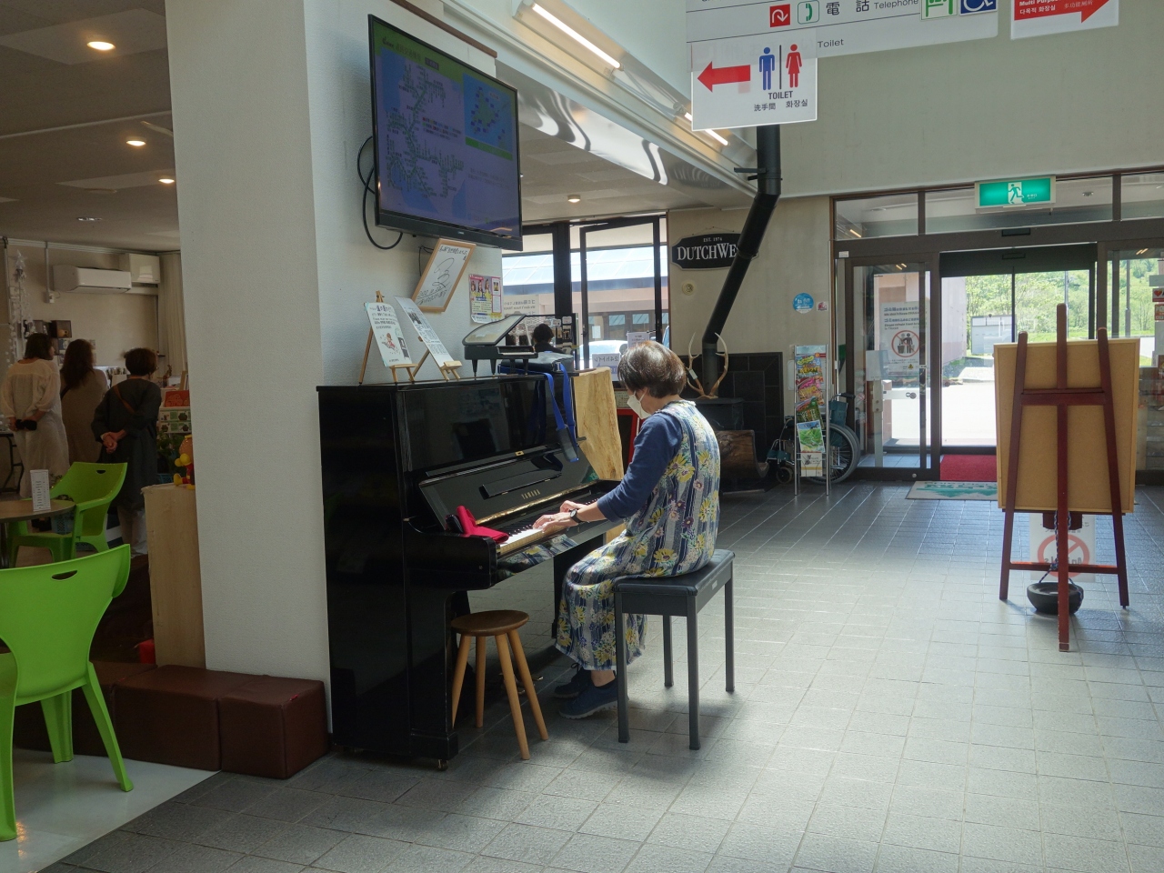 占冠の道の駅。ゆったりしていてのんびりできる。自由に弾けるピアノがおいてある。